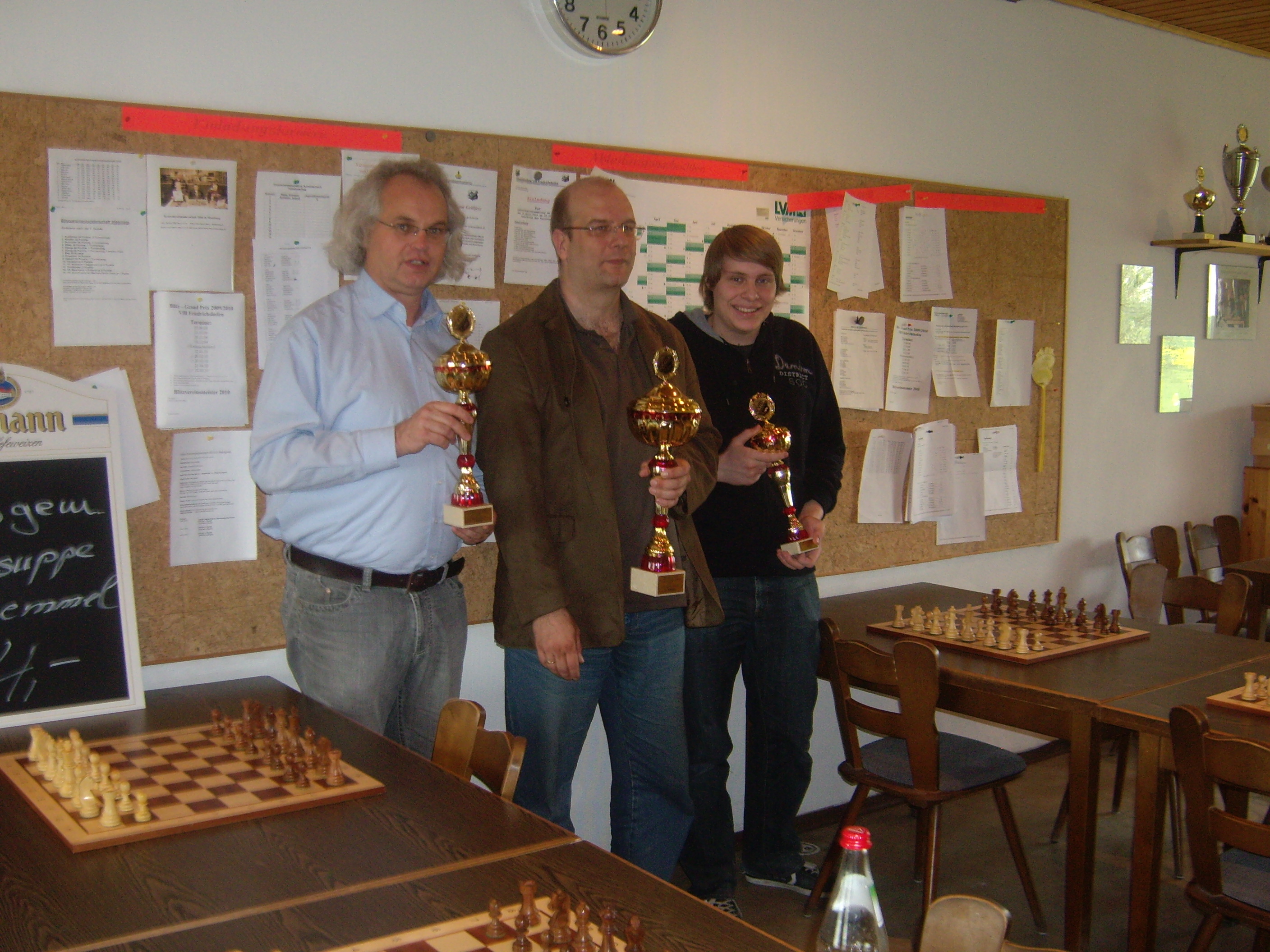 Die Sieger der Oberbayerischen Einzelmeisterschaft in Ingolstadt 2010, v.l.n.r.: Andreas Zach (SC Gröbenzell, Zweiter), FM Christoph Zill (SK Freising, Sieger), Leonhard Knoblauch (SV Ilmmünster, Dritter)