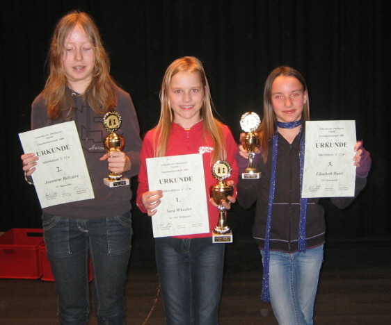 Auf den weiteren Plätzen folgten mit Sara Wheeler (SC Beilngries) und Jeannine Belizaire (SV Haunwöhr) zwei U12-Spielerinnen, diese vier haben sich damit auch für die bayerischen Mädchen-EM qualifiziert.