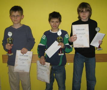 Spannend ging es in der U12 zu, wo sich Fabio Pavlas aus Geretsried und Benedikt Goderbauer aus Moosburg ein spannendes Rennen liefen. Am Ende hatten beide 4,0 Punkte und waren auch nach allen Folgewertungen gleich, so dass es diesmal zwei Bezirksmeister gibt.