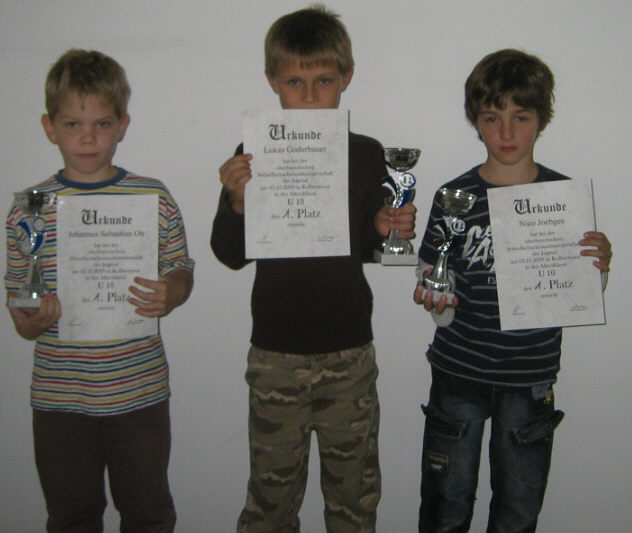 Ein totes Rennen gab es in der U10. Lukas Goderbauer aus Moosburg, Nico Joebges vom SK Gräfelfing und Josef Sebastian Ott aus Traunstein teilten sich den ersten Platz, da auch der direkte Vergleich untereinander keine Entscheidung brachte.